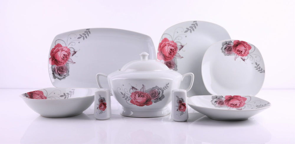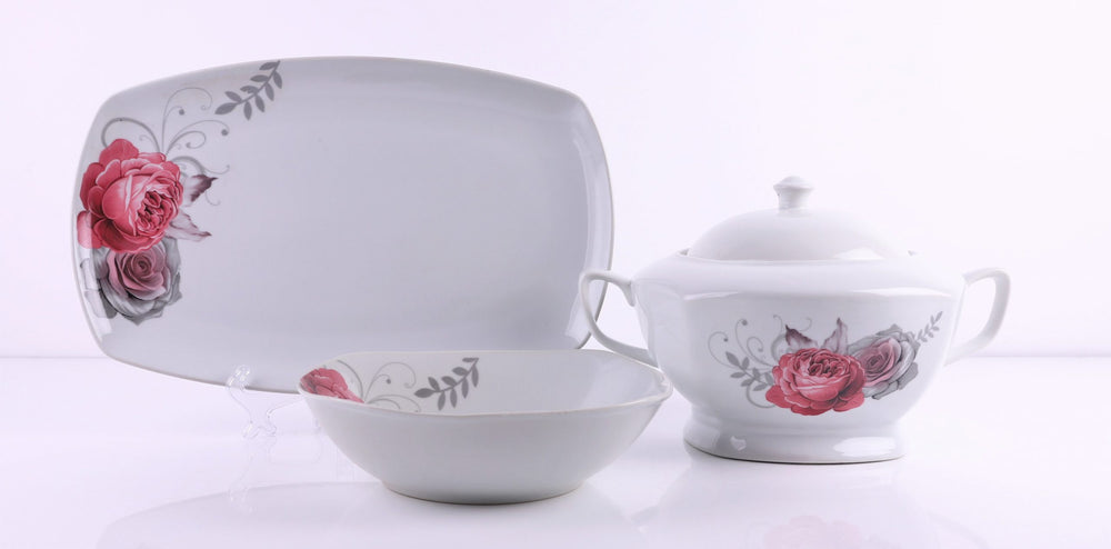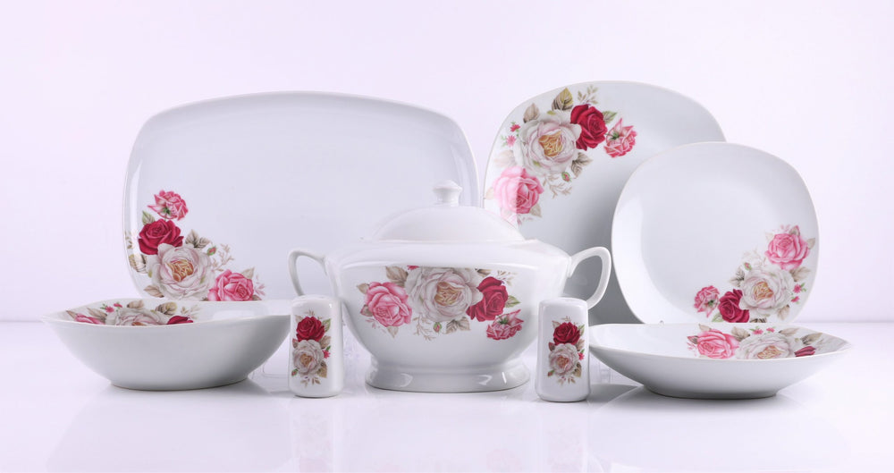| Serviciu de masa cu 42 de piese, pentru 12 persoane, imprimeuri florale |