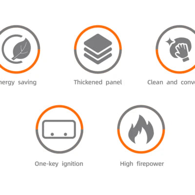 Cu panoul întărit și rezistent, aragazul este proiectat pentru utilizare zilnică, iar aprinderea printr-un singur click face controlul focului simplu și comod. Suportul pentru vase are un design special, tip gheară cu cinci colțuri anti-alunecare, asigurând stabilitate chiar și la vasele grele.