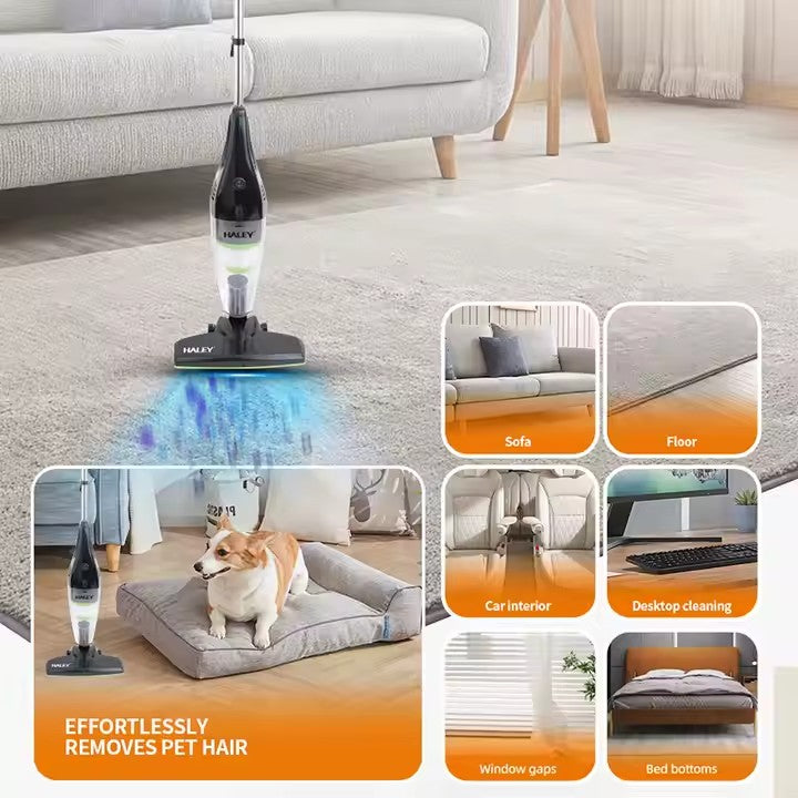 Aspiratorul HALEY HY-1925 îmbină performanța ridicată, portabilitatea și designul ergonomic pentru a-ți oferi soluția perfectă pentru curățenia rapidă și eficientă, fără sac, pe orice tip de suprafață.