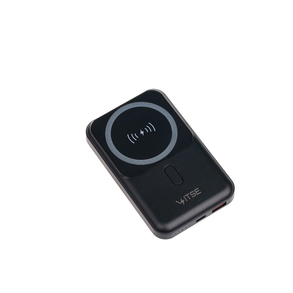 Baterie Externa Wireless Vitse Slim by Vitse 12.000 mAh, Compatibila iPhone 12-15 Pro si Android, Power Bank fast charger, incarcare Wireless QI 20W, Portabila, Cablu Type-C, Alb