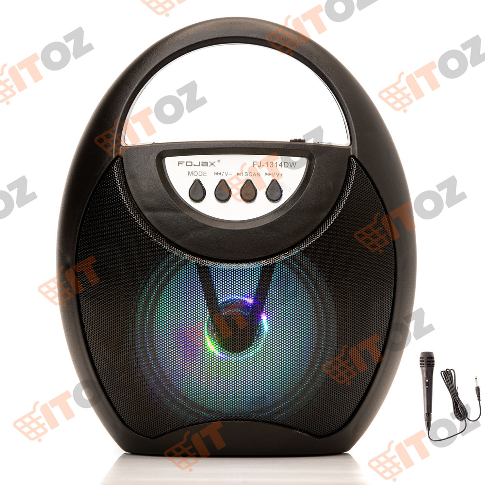 | Specificații produs: | •Conexiune Bluetooth,cablu aux,Radio, citire MP3 cu SD-card sau USB ce conține butoane de comandă; • mâner detașabil în partea de sus pentru manevrabilitate pe asfalt sau ciment, cu troliu în partea de jos; • Joc lumini dupa sunet • intrări pentru chitară și microfon (jack mare de 6.3mm); • efect de ecou la microfon Karaoke (ECHO); • acumulator încorporat cu autonomie mare (6-9 ore în funcție de volum); • foarte ușor de transportat, datorită sistemului tip troller; 55cm cu maner , 45cm fara maner • boxă mobilă cu subwoofer; • putere efectivă: 150W; • culoare disponibilă: negru Pachetul conține: • boxă activă portabilă cu acumulator intern; • microfon cu fir; • cablu . |
