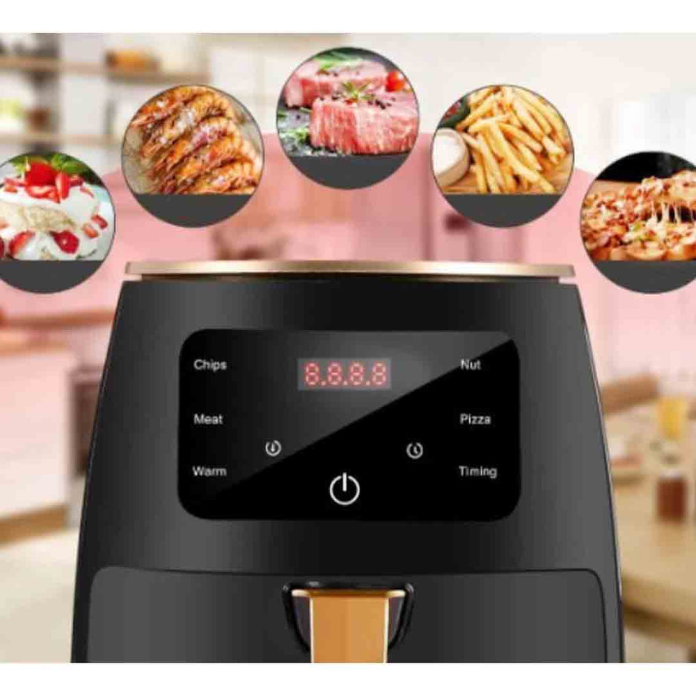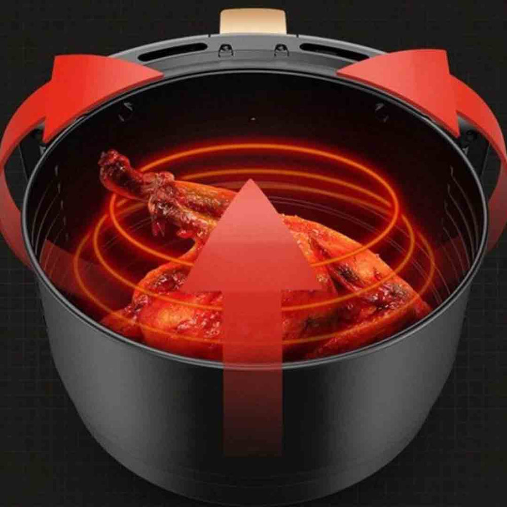 Această friteuză modernă utilizează tehnologia avansată de aer cald pentru a găti alimentele într-un mod eficient și sănătos, fără ulei sau grăsimi suplimentare.