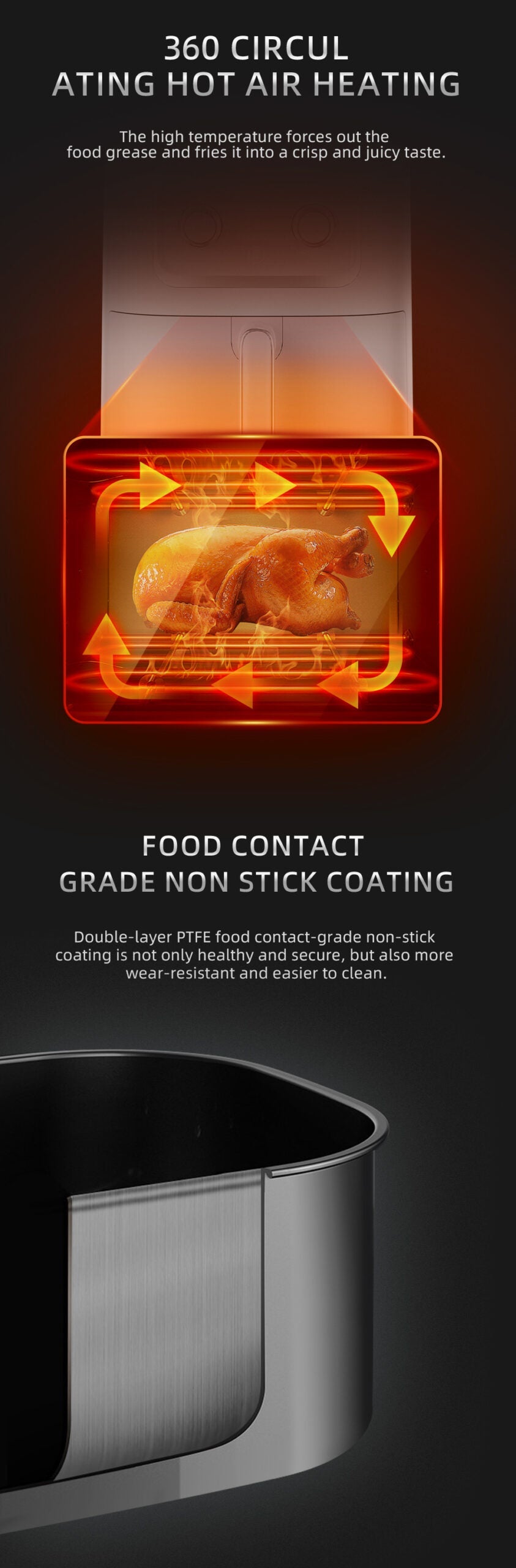 🍗 Bol generos de 6L – Ideal pentru porții mari, perfect pentru familie și prieteni.
