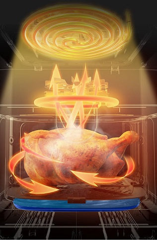 ✔ Tehnologie de Circulație a Aerului Fierbinte – Gătire uniformă, fără necesitatea utilizării uleiului.