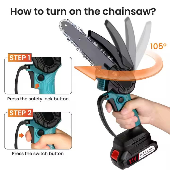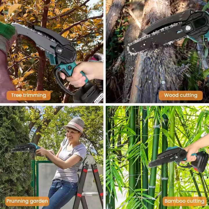 🔴 Mini Fierăstrău Electric cu Lanț pe Acumulator AT PERFORMANCE® – Putere Compactă pentru Tăieri Precise! 🔴