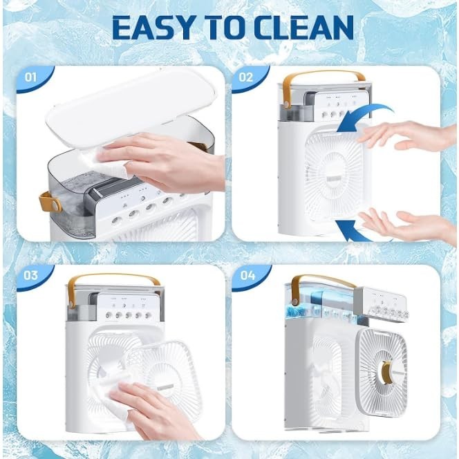 Fie că ești la birou, acasă sau în deplasare, AT PERFORMANCE® îți aduce un nou standard de confort în zilele calde. Mini răcitorul de aer portabil 4 în 1 combină funcțiile de ventilator, umidificator, răcitor evaporativ și iluminare LED ambientală pentru o experiență completă de răcorire și relaxare.