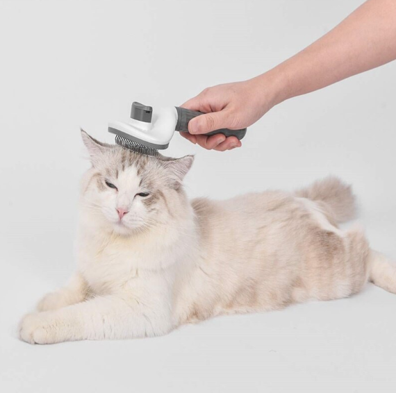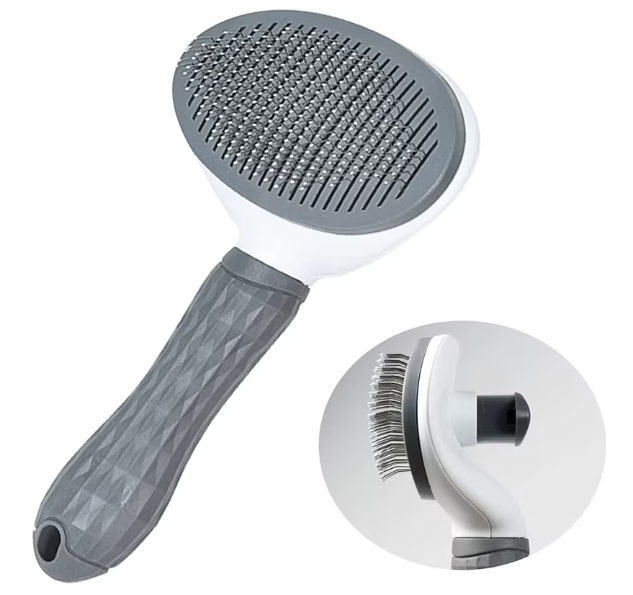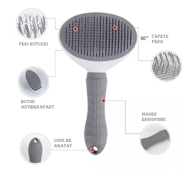 Perie animale pentru curatarea si ingrijirea parului, cu buton auto-curatare, pisici, caini, iepuri, gri