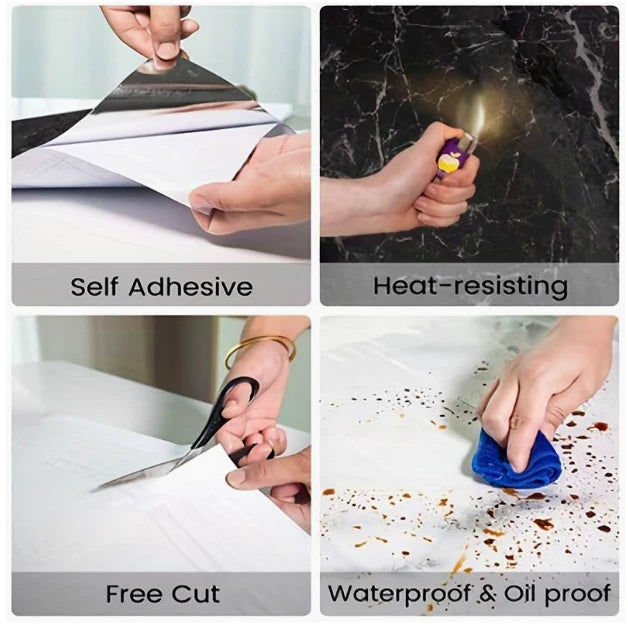 Rola tapet modern, imitatie de marmura At Performance rezistent, la apa, compact, autoadeziv, 60cmx 300 m, Negru