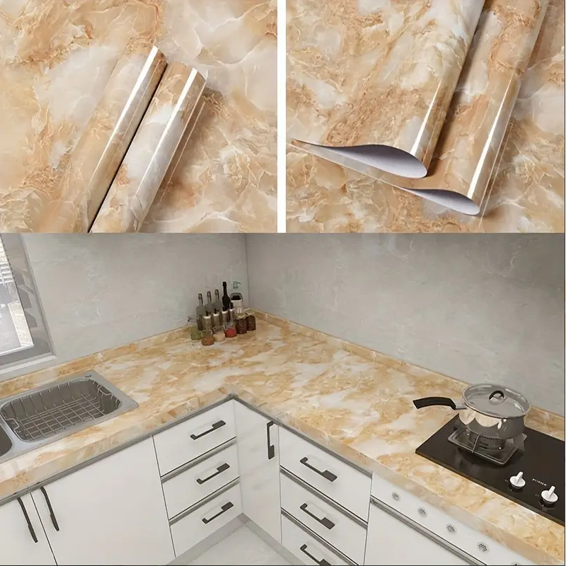 Rola tapet modern, imitatie de marmura At Performance rezistent, la apa, vinil, compact, autoadeziv, 60cmx 300 cm, portocaliu cristal