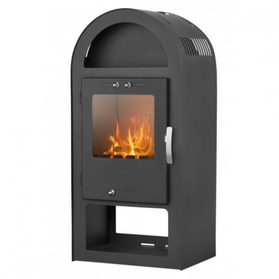Soba pe lemne de 7,500 W gri mat este compactă și are o performanță energetică excelentă. Poate încălzi perfect o încăpere de până la 75 m².