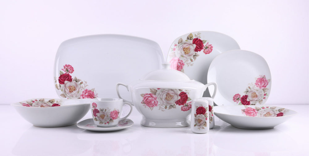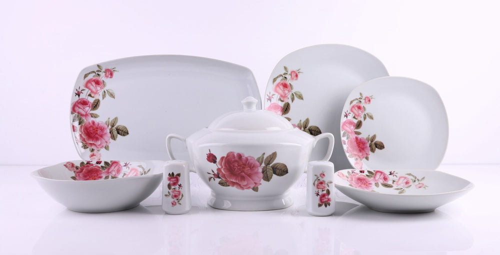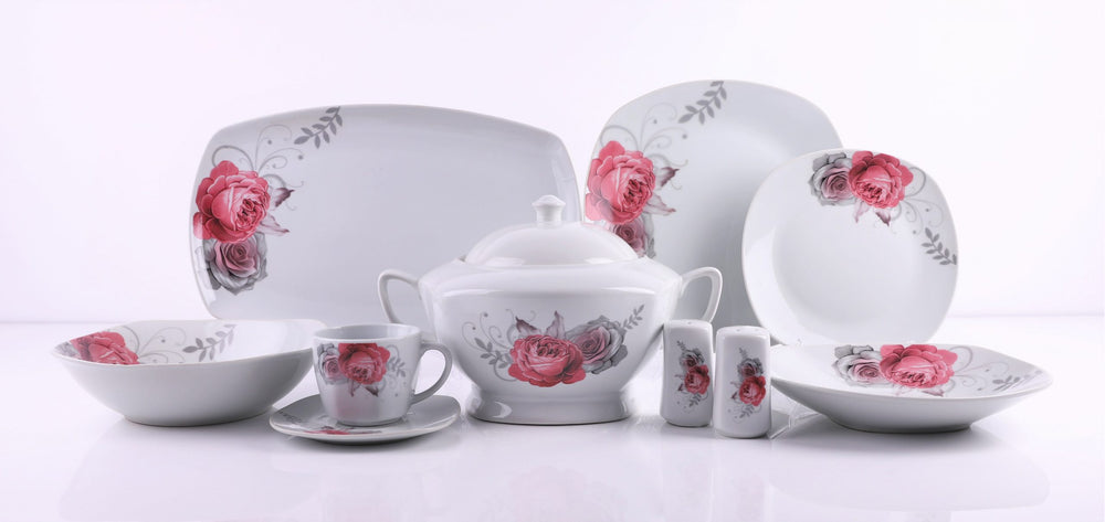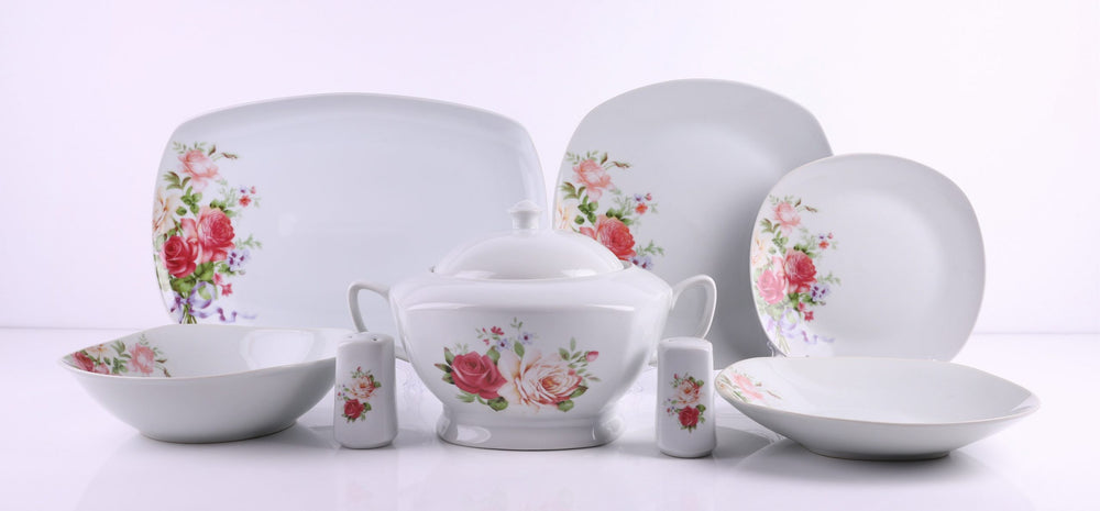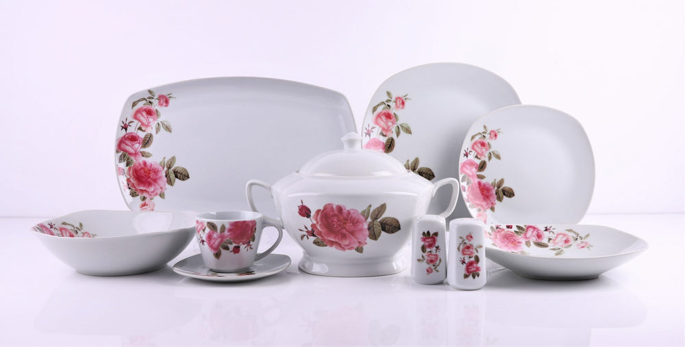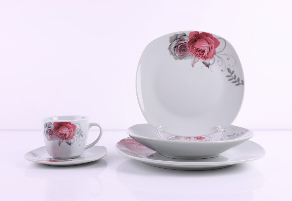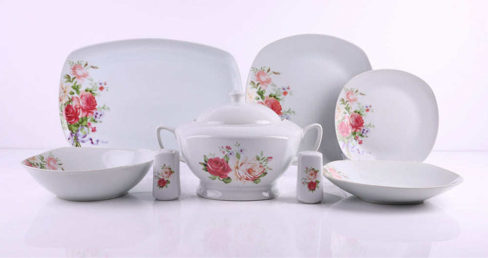 | Serviciu de masa cu 42 de piese, pentru 12 persoane, imprimeuri florale |