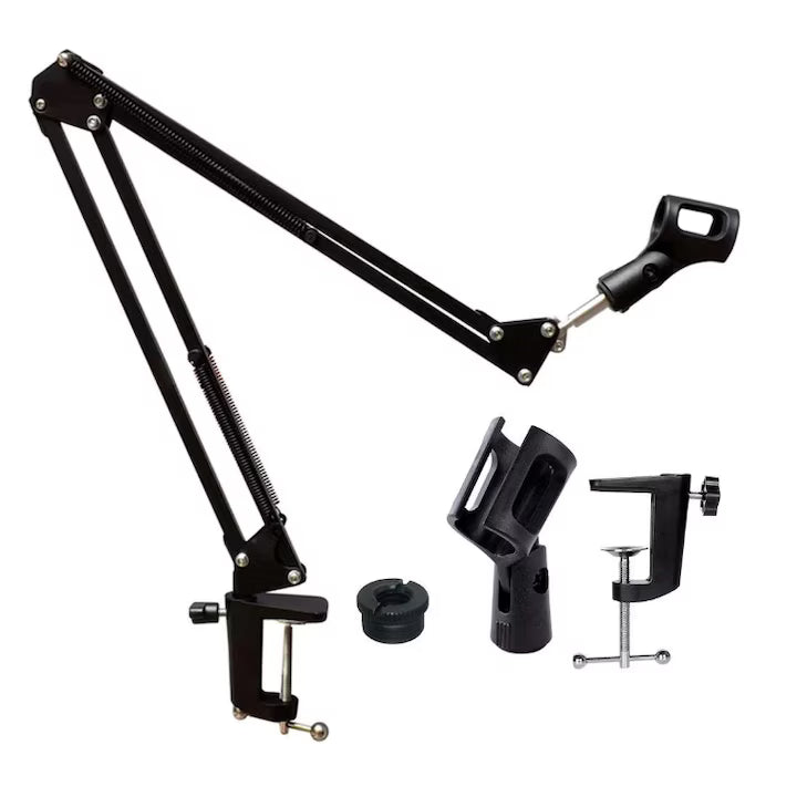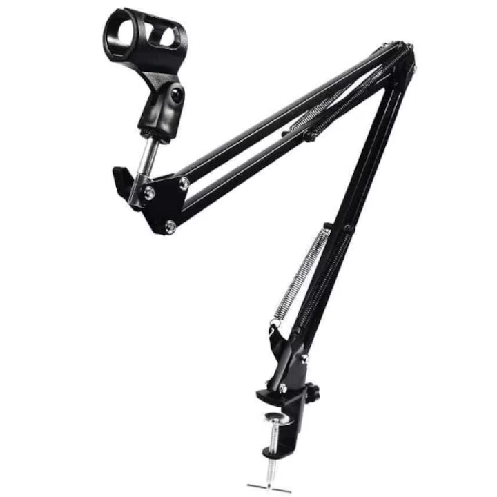 Stativul pentru microfon de birou este alegerea ideală pentru cei care doresc stabilitate și flexibilitate în utilizare. Fabricat din oțel rezistent și având o construcție solidă, acest suport oferă durabilitate pe termen lung, menținând microfonul fixat în poziția dorită.