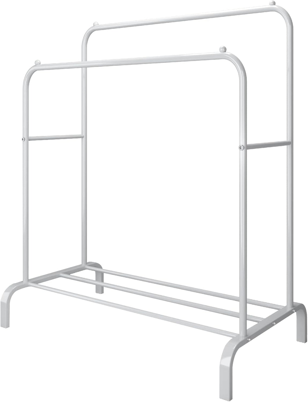 Un suport dublu pentru haine in picioare pentru a va mentine organizat. Are spatiu pentru a agata umerase, haine sau jachete libere si un suport pentru pantofi.