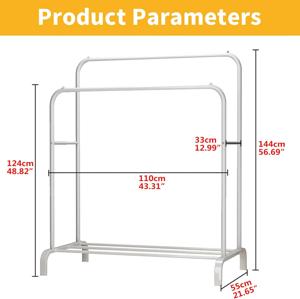 ⏩ Echipat cu doua tije orizontale, acest cuier ofera un spatiu dublu de depozitare pentru haine. Ideal pentru agatarea paltoanelor, jachetelor, rochiilor si a altor articole din garderoba.