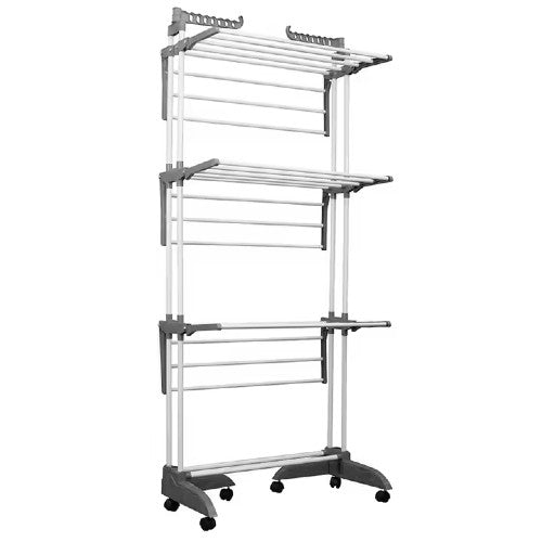 Designul său vertical maximizează spațiul disponibil, fiind perfect pentru apartamente mai mici sau pentru a fi utilizat în zonele unde nu aveți suficient loc pentru un uscător tradițional. Cele patru niveluri permit uscarea simultană a mai multor articole de îmbrăcăminte, optimizând astfel timpul necesar uscării.